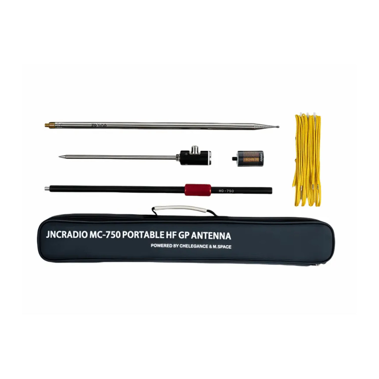 Im Frequenzbereich von 14–50 MHz arbeitet die MC-750 als ¼-Wellen-Groundplane. Für den Betrieb im 40-m-Band wird die mitgelieferte Verlängerungsspule eingesetzt. Der stabile Antennenfuß mit Erdspieß verfügt über einen PL / SO239 Anschluss sowie Anschlüsse für Gegengewichte. Im Lieferumfang enthalten sind 3,5 m lange Draht-Radials für optimale Abstrahlung. Der 5,60 m lange Teleskopstrahler mit M10-Außengewinde sorgt für zuverlässigen Betrieb auf allen unterstützten Bändern.