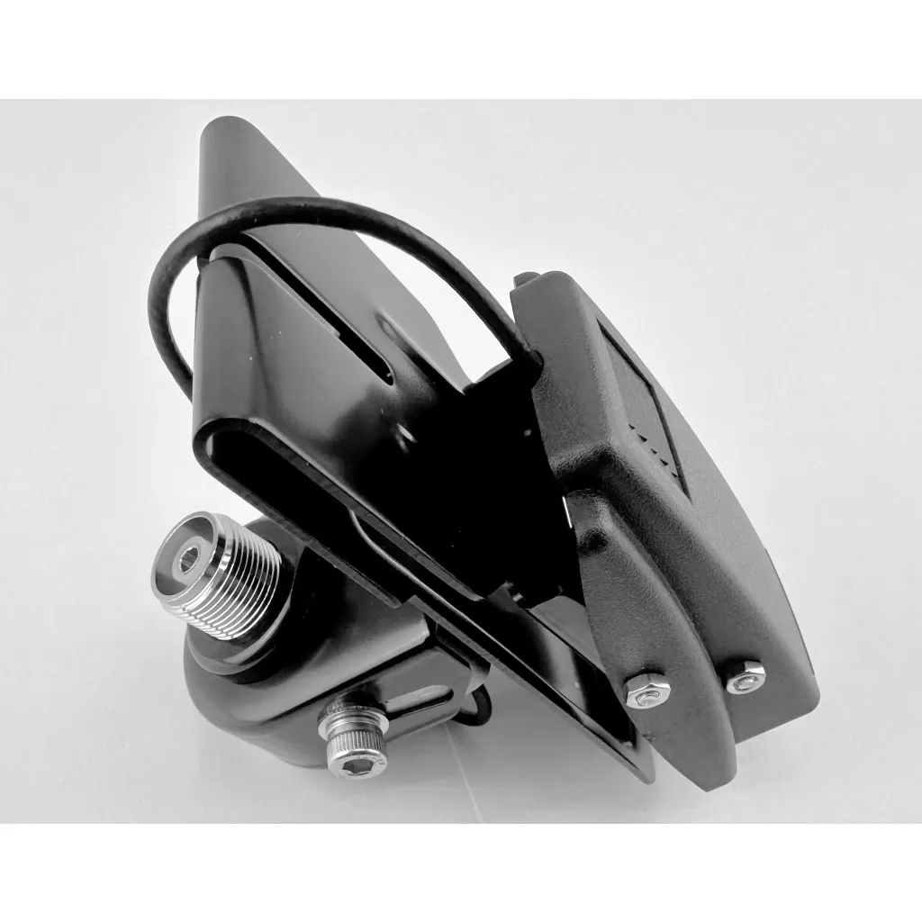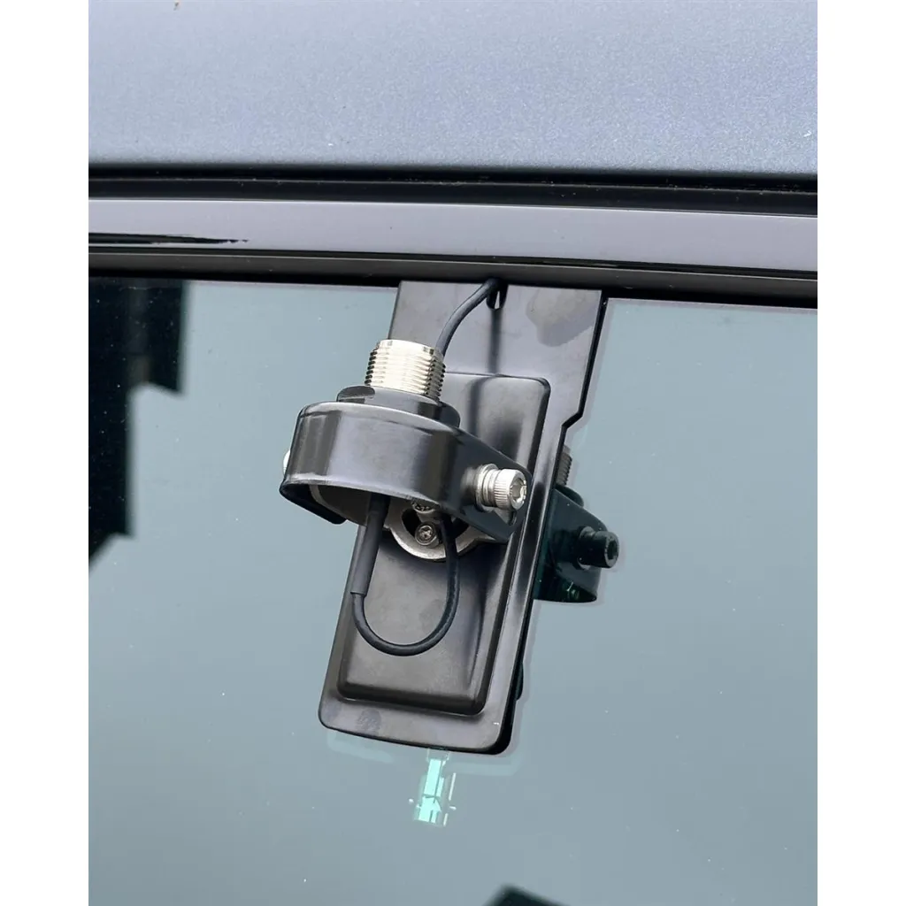 Das Außenteil ist in zwei Achsen neigbar, so das die Antenne unabhängig von der Scheibenneigung senkrecht gestellt werden kann. Die Halterung ist verwendbar für Antennen, die ohne Gegengewicht auskommen, wie z.B. die Diamond NR-770/760 Serien.