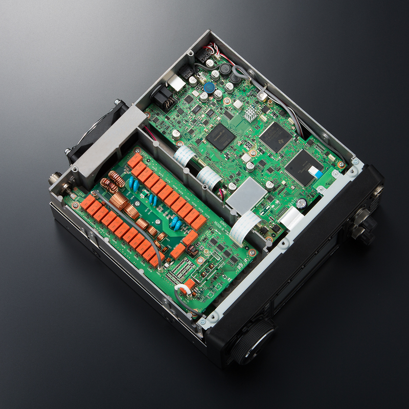 Der Empfänger bietet mit 15 automatisch geschalteten Bandfiltern vor dem AD-Wandler eine hervorragende Vorselektion. Um hier Verluste möglichst klein zu halten werden Spulenfilter hoher Güte verwendet. Durch die Filterung wird der AD-Wandler nur mit den Signalen versorgt, die auch empfangen werden sollen, daneben liegende Bereiche werden ausgeblendet. Dadurch kann der Dynamikbereich des AD-Wandler besser vollständig ausgenutzt werden. Das Resultat ist ein sehr guter rückwirkungsfreier Dynamikbereich (RMDR) von 97dB.